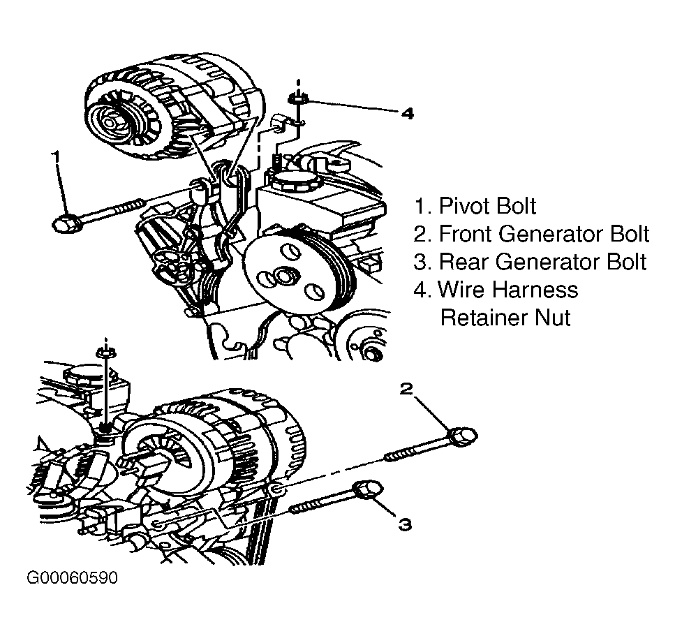 - Install generator bolts (2, 3) to generator. See Figure .
