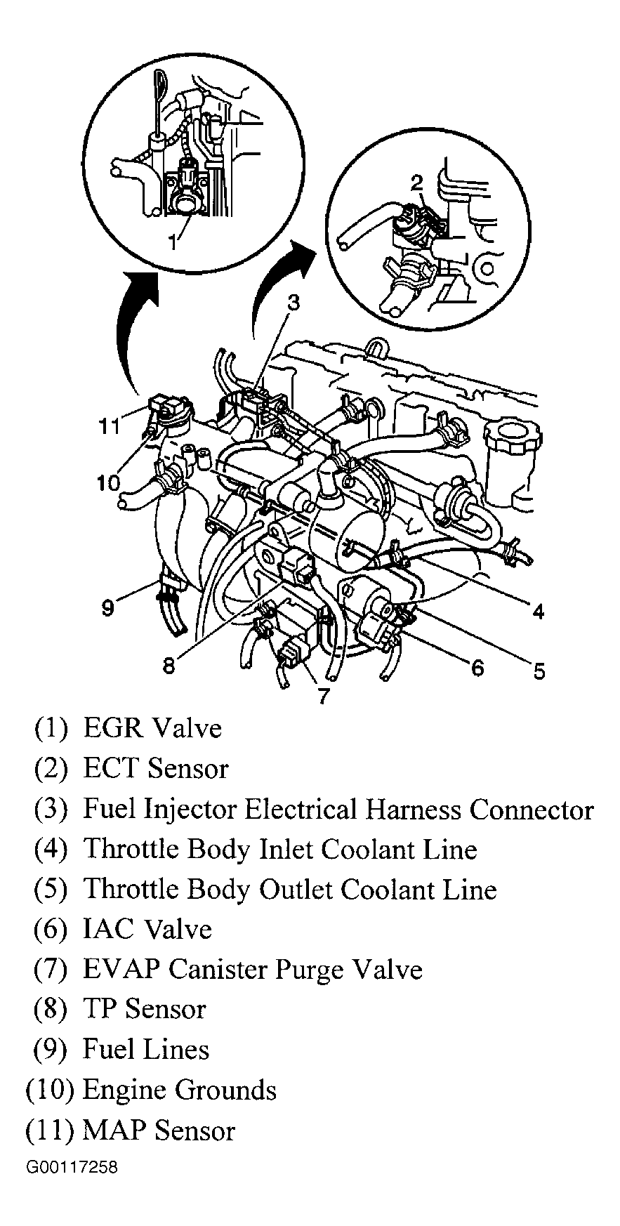 Fig 1: Locating Engine Coolant Temperature Sensor & EGR Valve (2.0L)