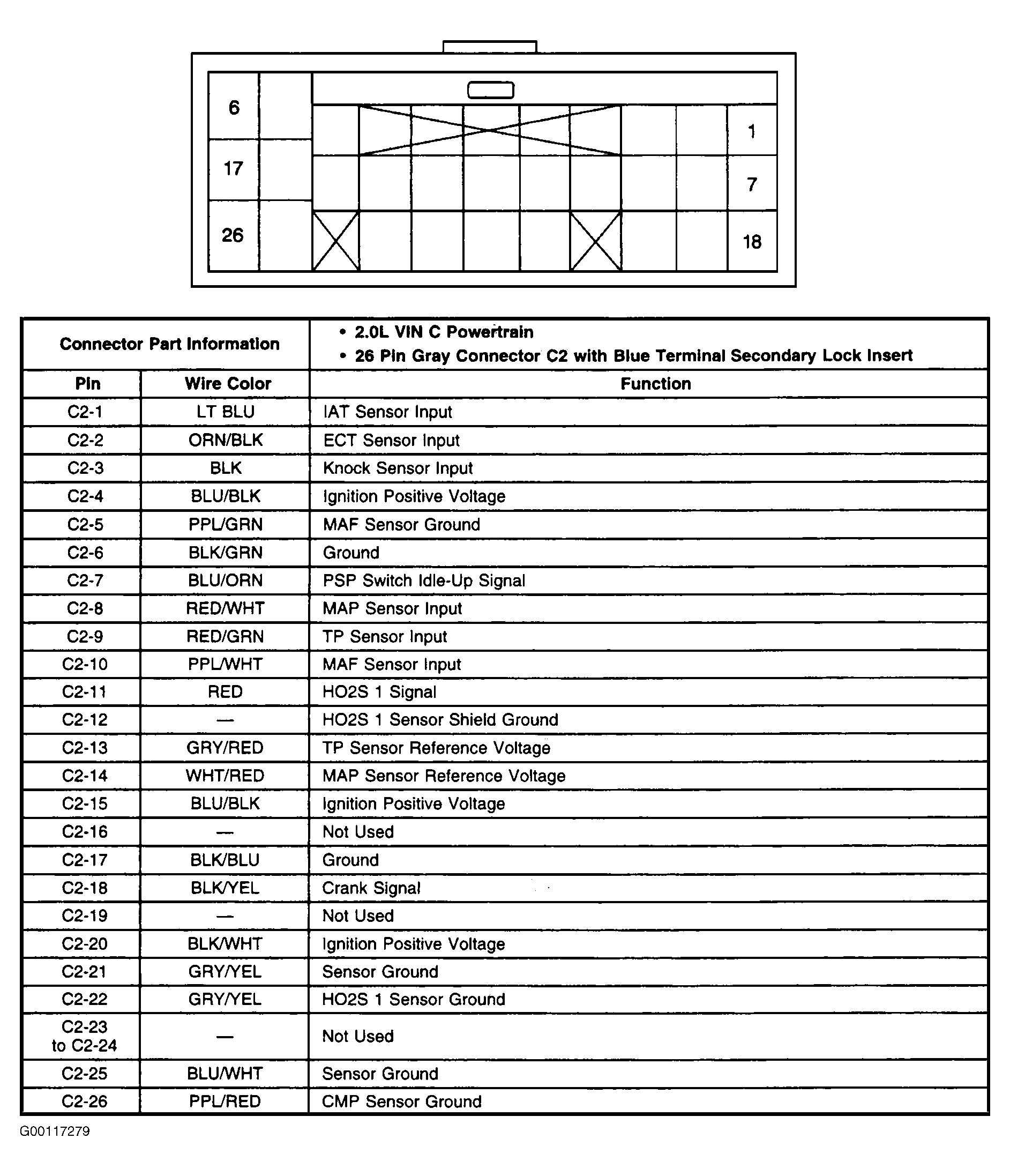Fig 2: Identifying PCM Harness Connector C2 Terminals (2.0L)