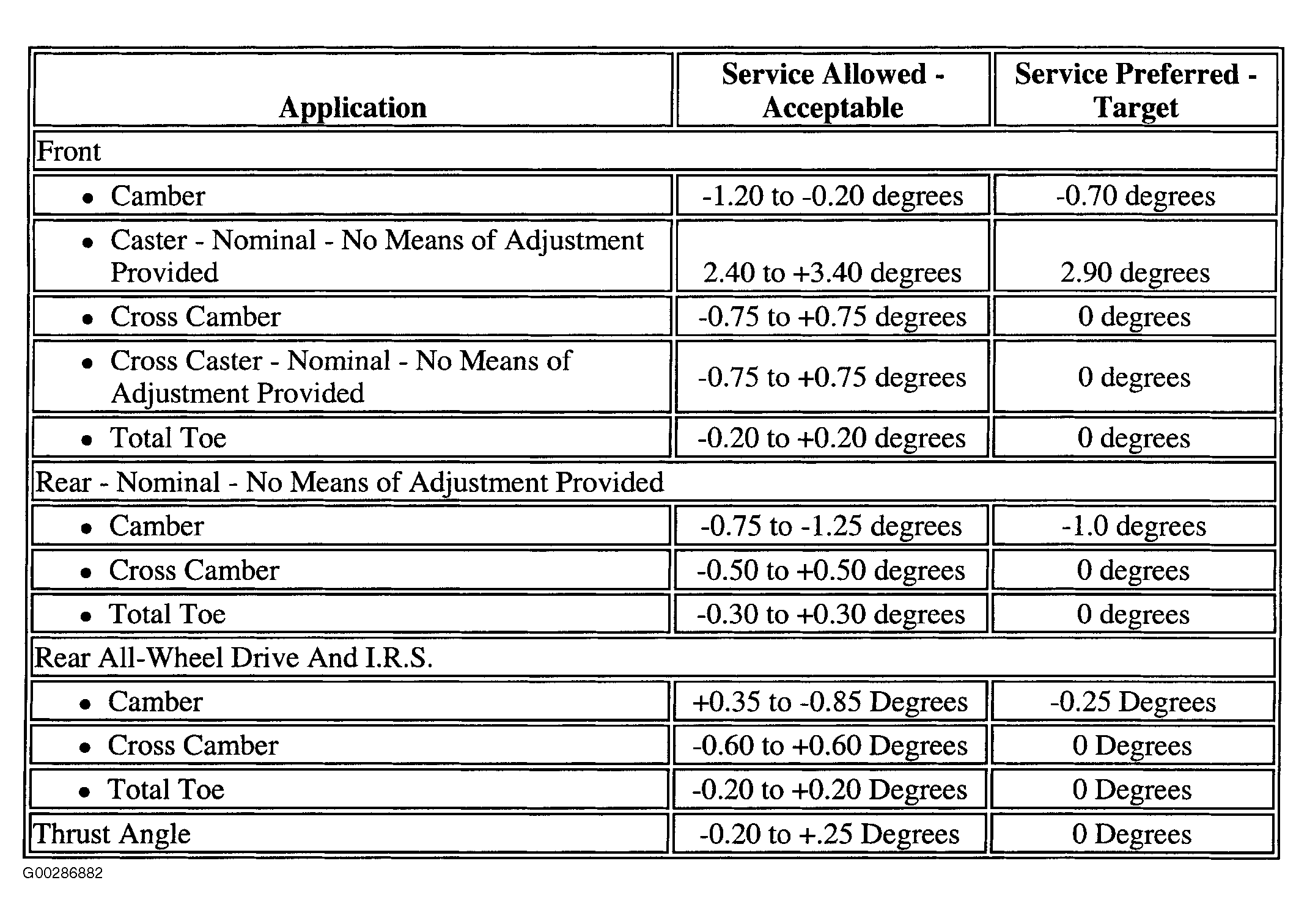 Wheel Alignment Specifications: Specifications