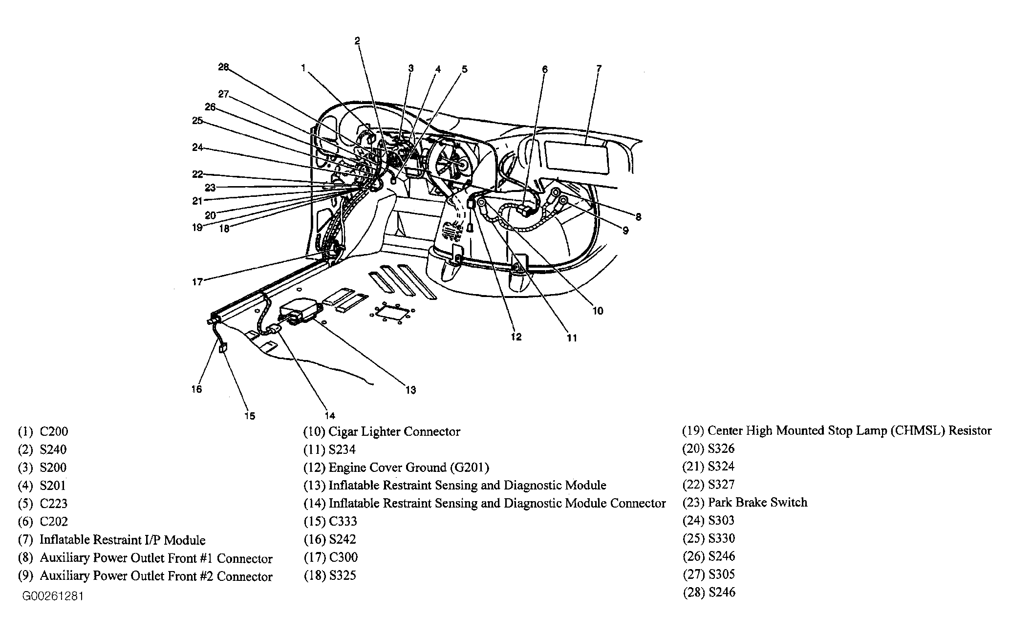 | Inflatable Restraint I/P Module | Right side of dash. See Figure . |