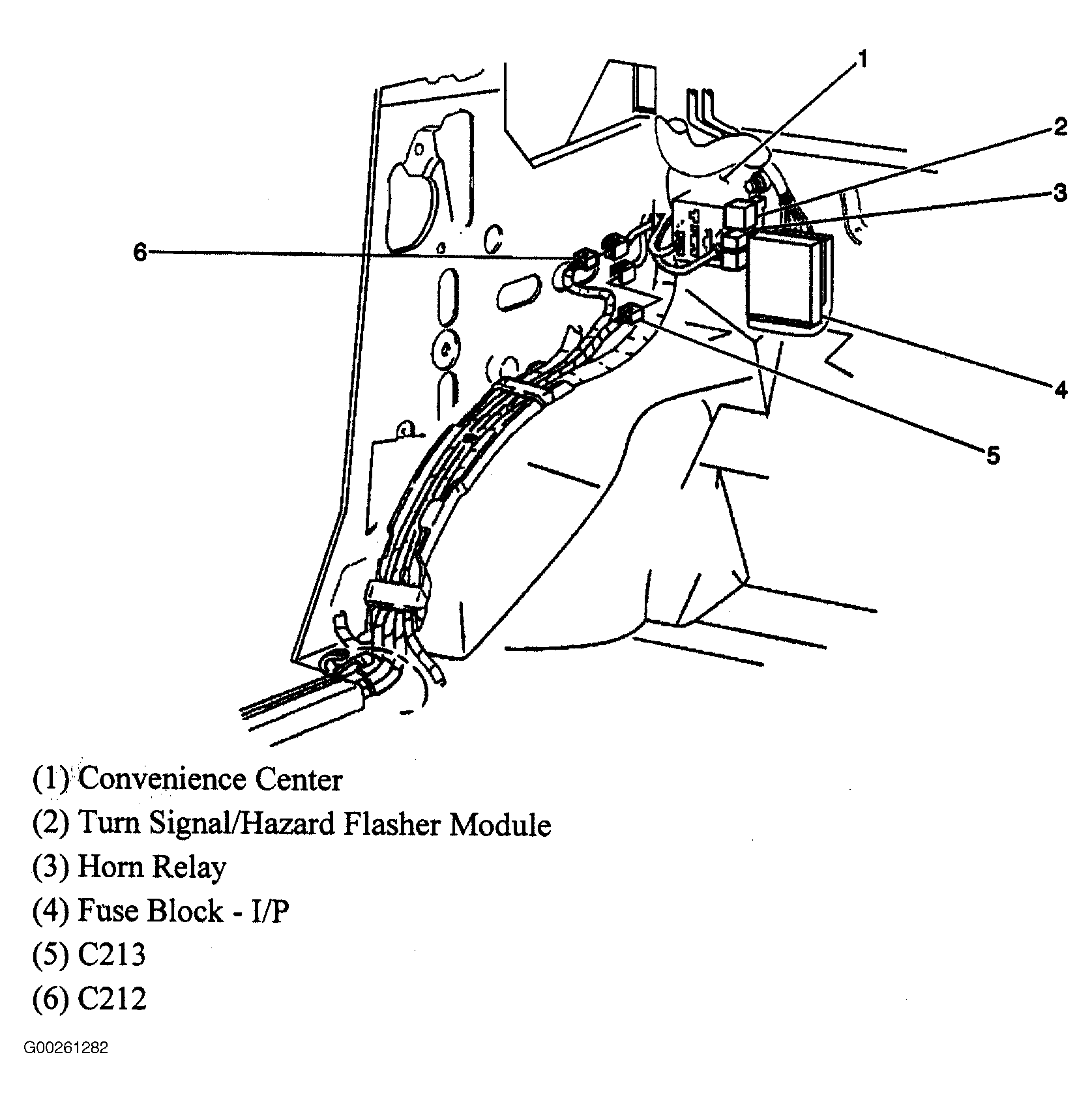 | Turn Signal/Hazard Flasher Module | On convenience center. See Figure . |