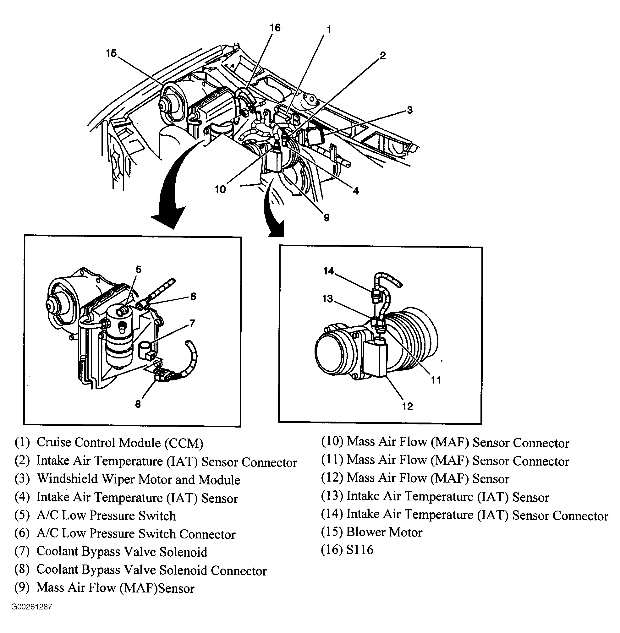 | Windshield Wiper Motor & Module | On center of firewall, next to cruise control module. See Figure . |