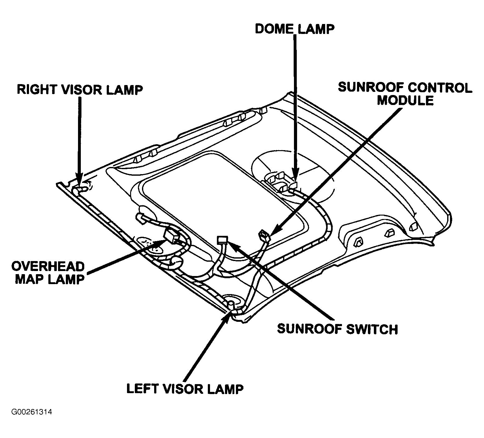 | Sunroof Control Module | Left side of sunroof. See Figure . |