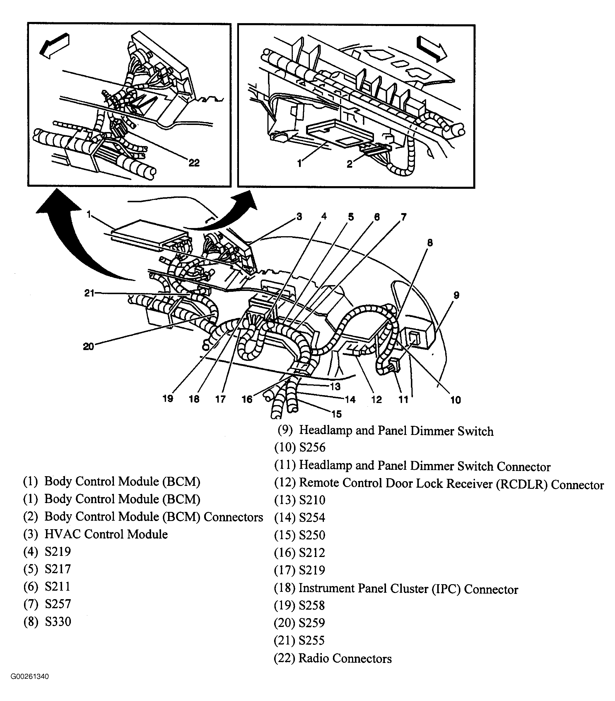 | Body Control Module (BCM) | Above radio. See Figure . |