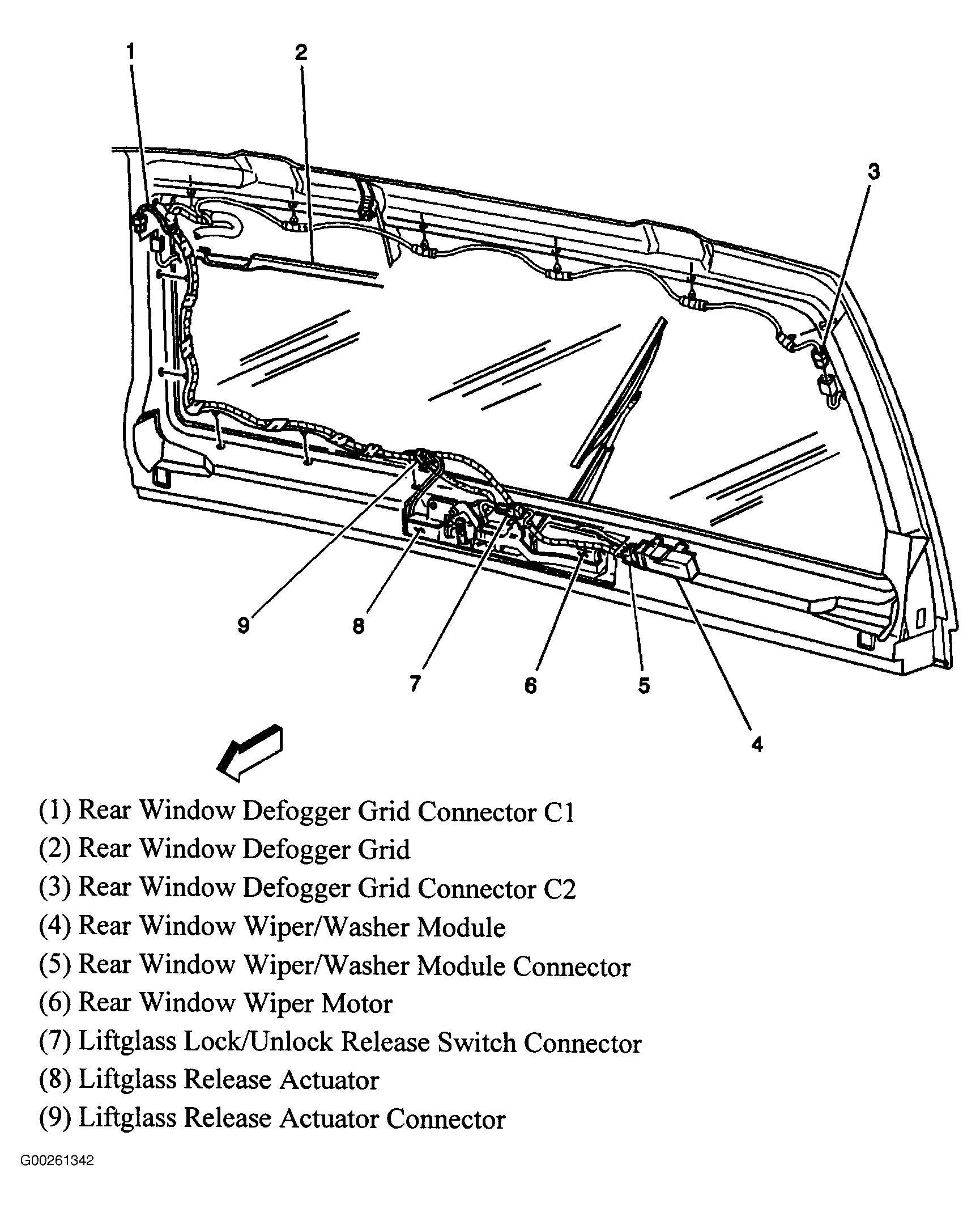 | Rear Window Wiper/Washer Module | In left side of liftgate. See Figure . |