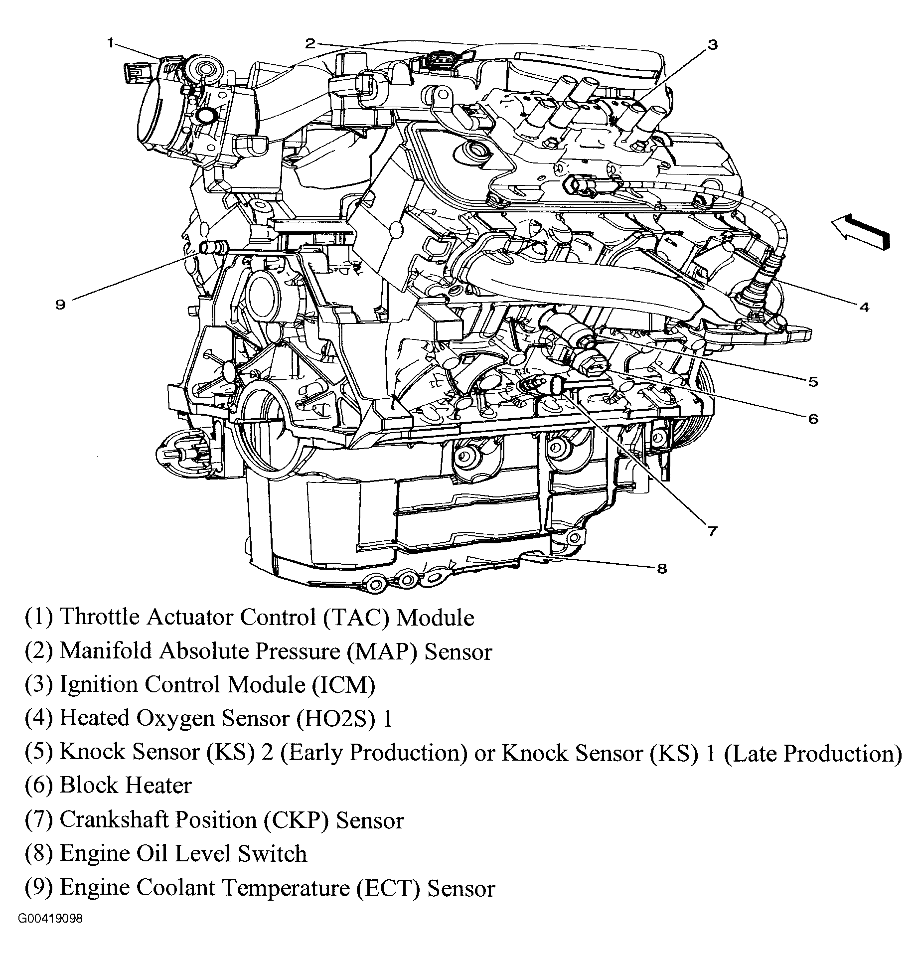 | Throttle Actuator Control (TAC) Module (3.9L) | Rear of engine, on throttle body assembly. See Figure . |