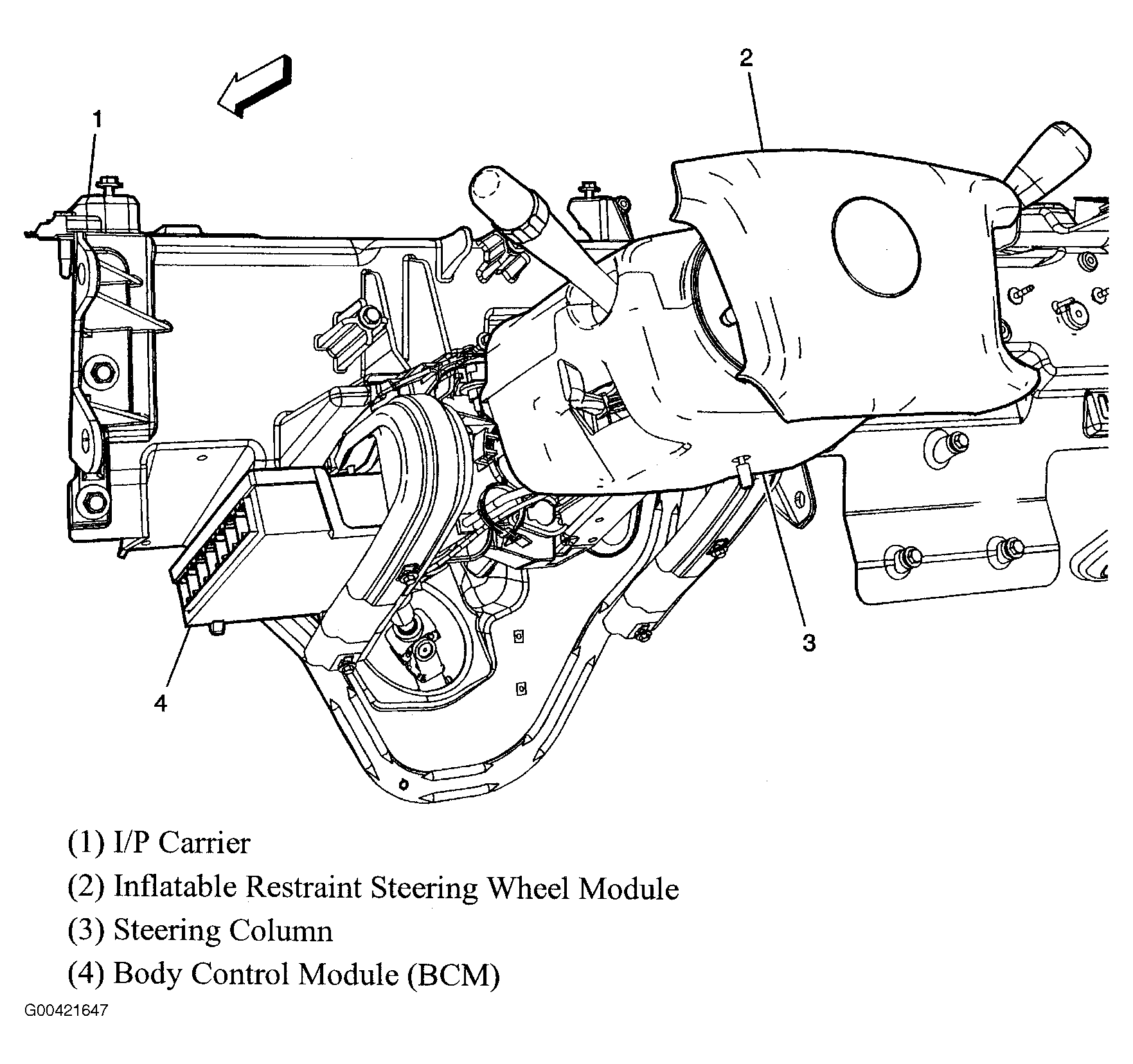Inflatable Restraint Steering Wheel Module Center of steering wheel. See Figure.