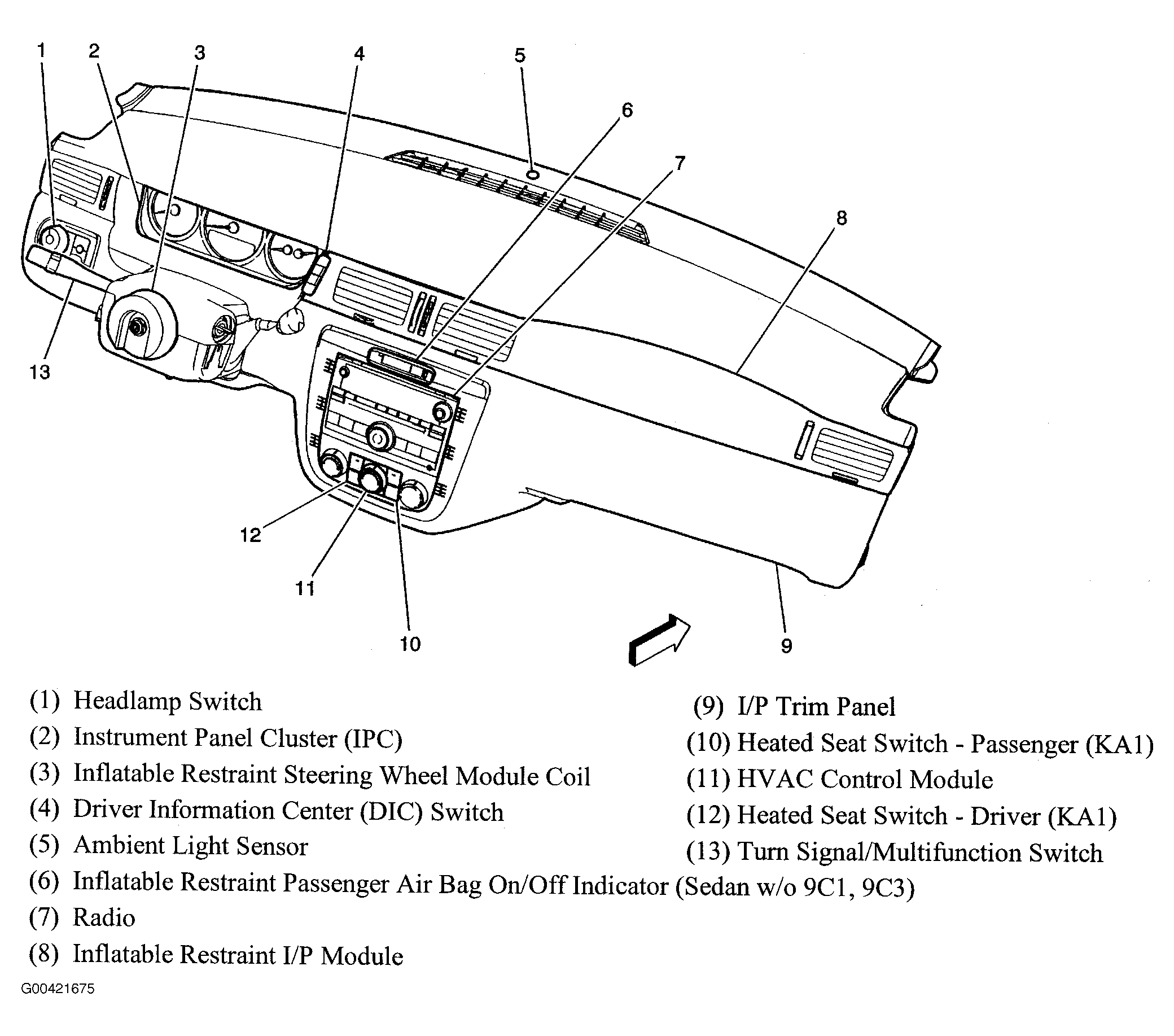 Inflatable Restraint I/P Module Right side of instrument panel, above dash compartment. See Figure.