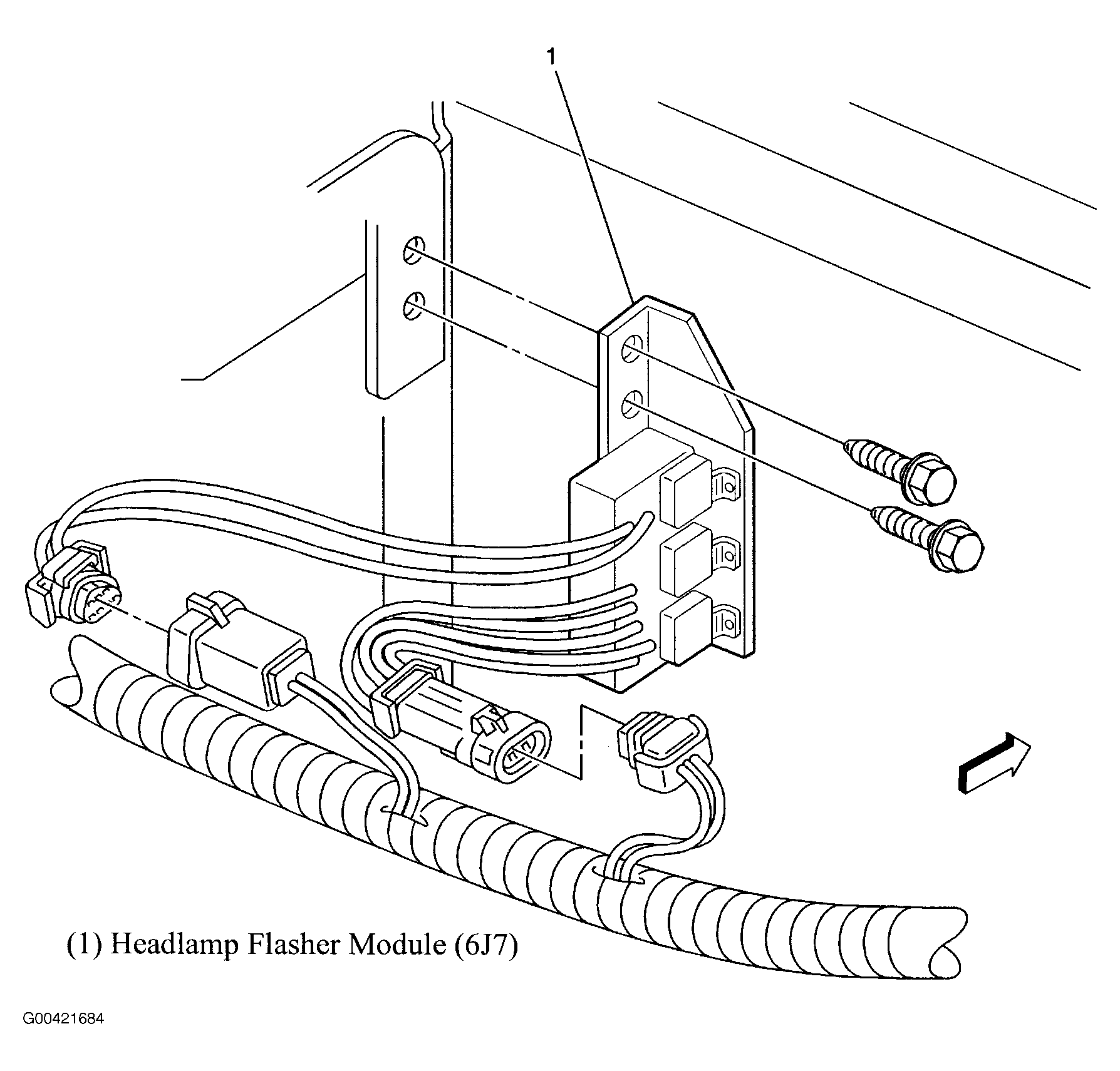 Headlamp Flasher Module At left side of right headlamp assembly. See Figure.