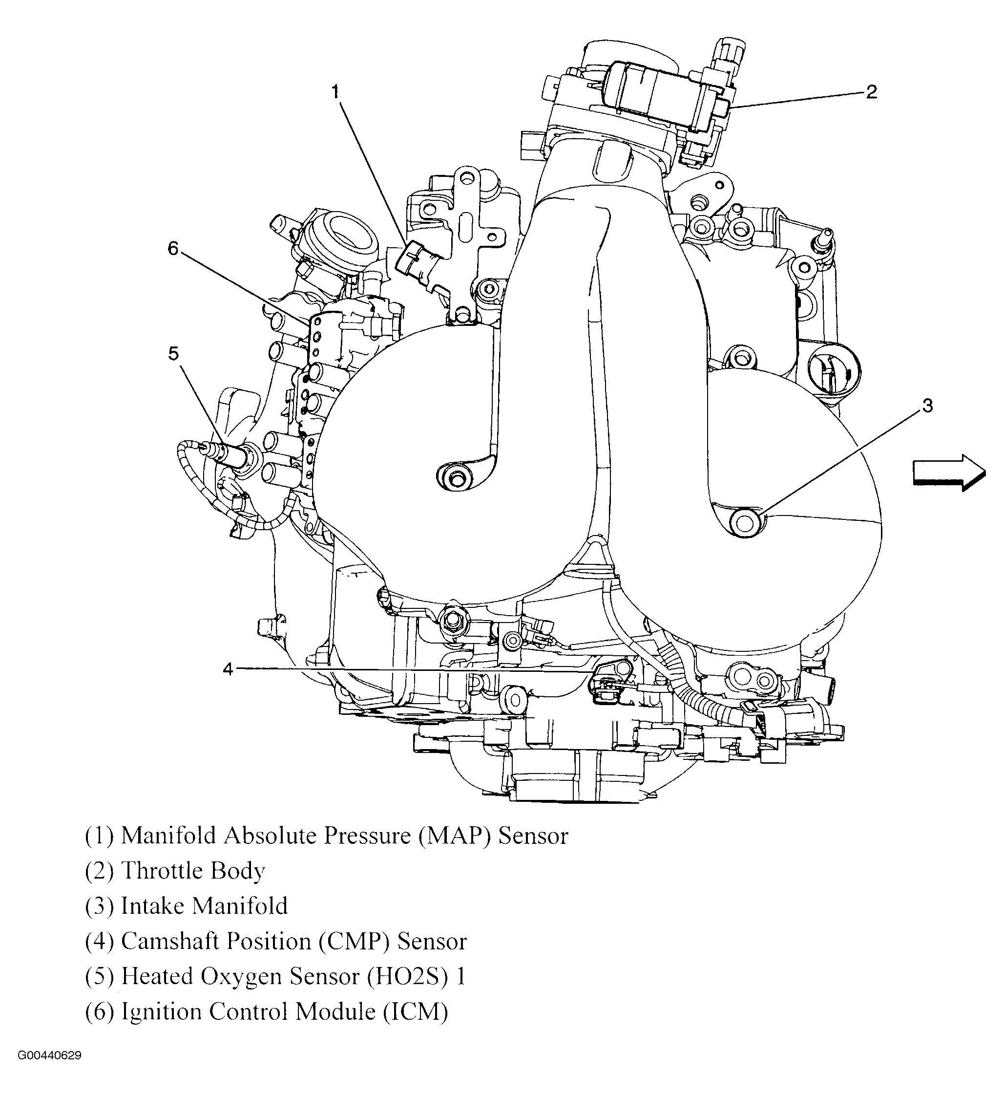 Ignition Control Module (ICM) Top rear center of engine. See Figure.