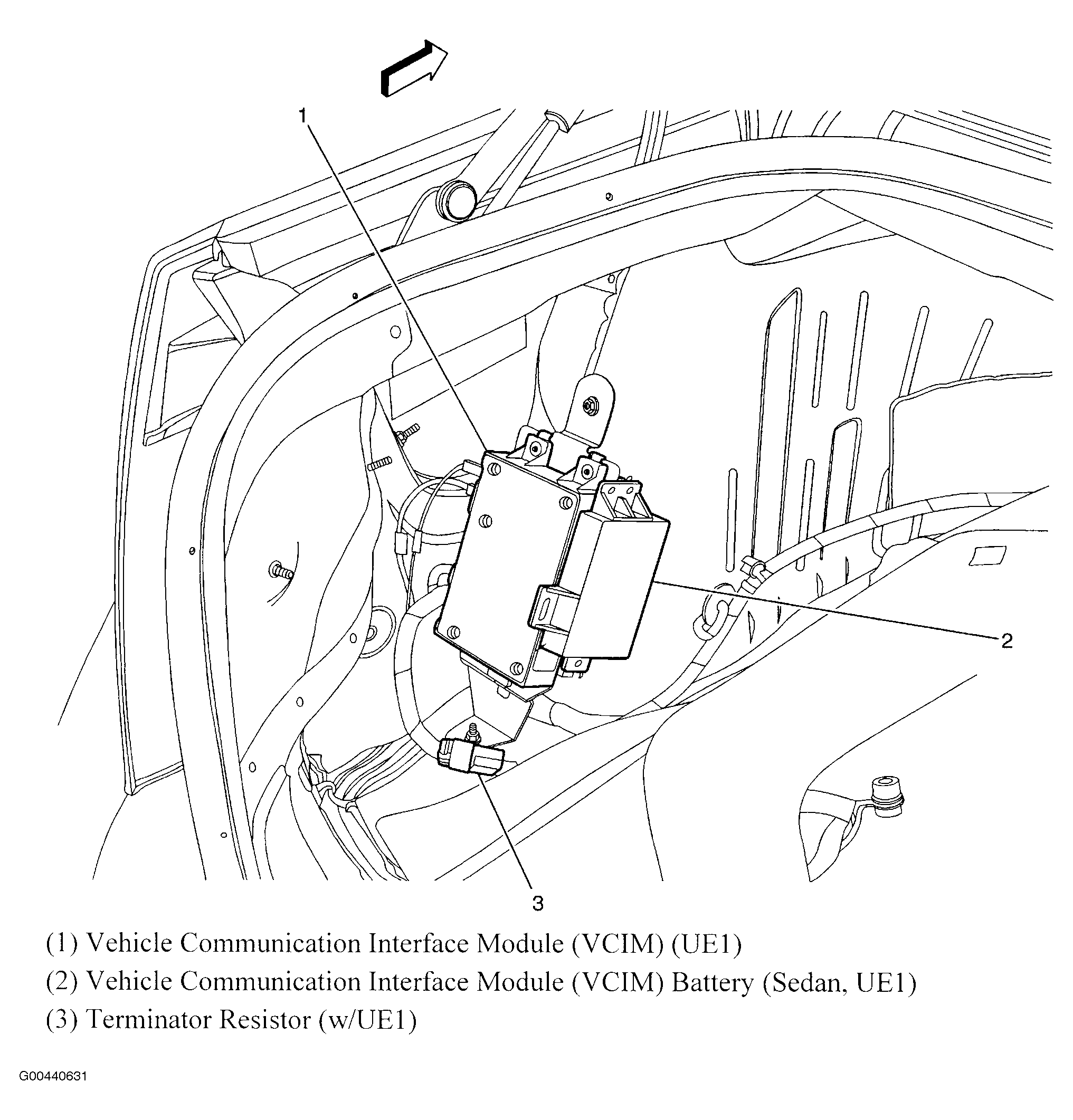 Vehicle Communication Interface Module (VCIM) Mounted to rear of left rear wheelhouse. See Figure.