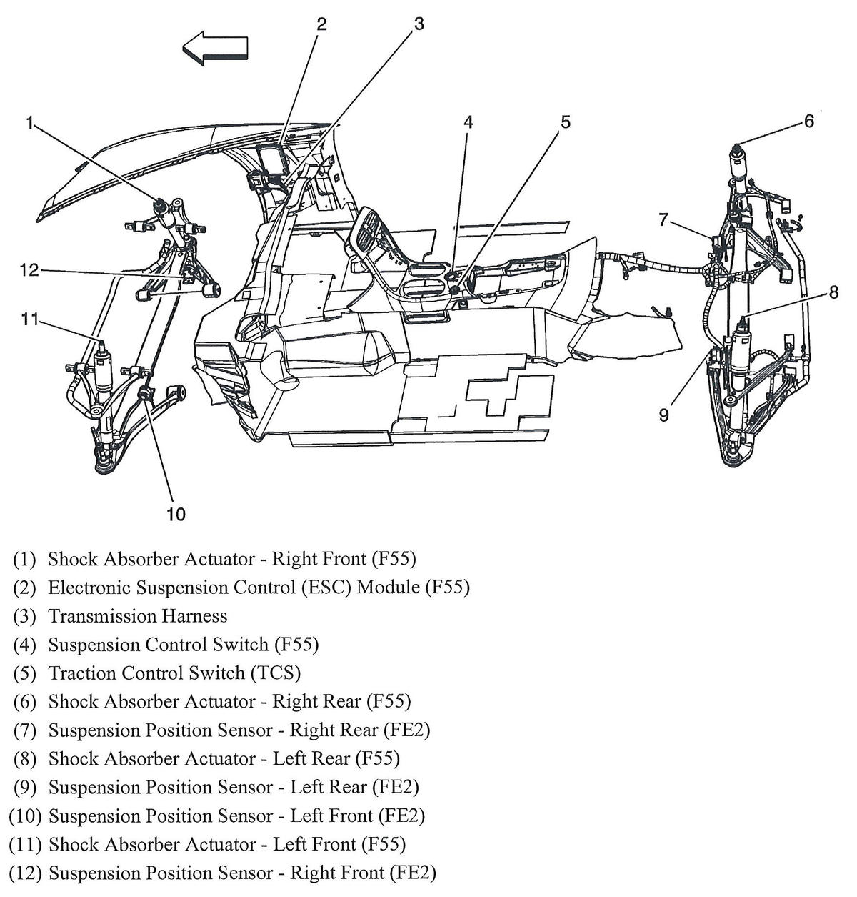 | Electronic Suspension Control (ESC) Module | Behind right front fender, above ECM. See Figure. |