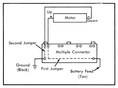 - Using two jumper wires, connect one jumper wire end to tan wire terminal and other end of jumper wire to "UP" terminal (see Fig 1 ).