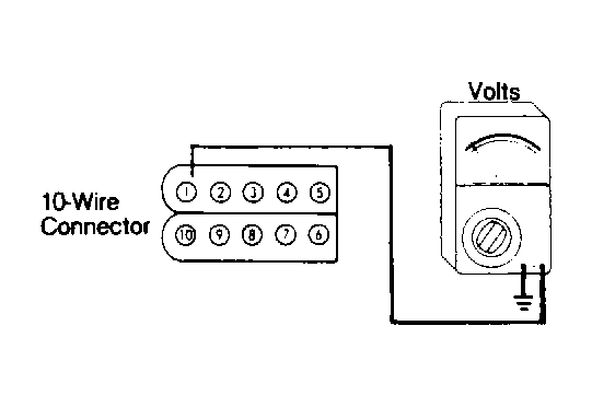 - If spark results, but engine will not start, turn ignition switch to the "RUN" position. Connect positive voltmeter lead to terminal 1 of 10-wire connector and negative lead to a good ground. See Fig 1 . Reading should be within 1 volt of battery voltage. If not, check wire for open and repair it. Repeat this step after repairing wire. Reconnect 10-wire connector to computer.