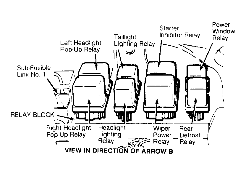 | Sub-Fusible Link No. 1 | Next to front relay block. See Figure . | |