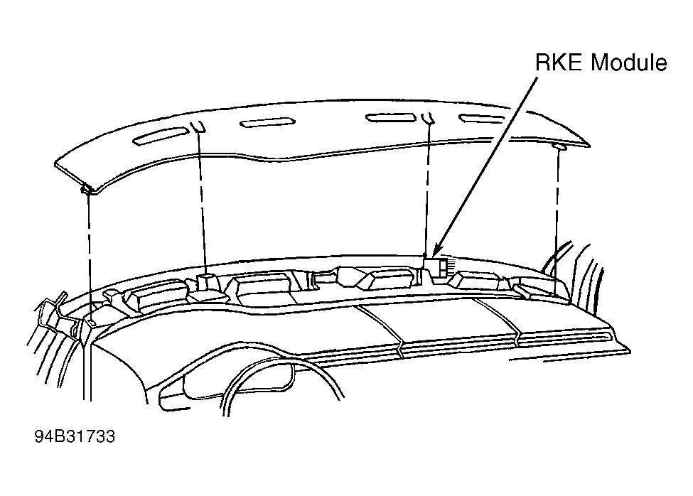 1. Gain access to Remote Keyless Entry (RKE) module. See Figure . Disconnect RKE module Black connector. Go to next step.