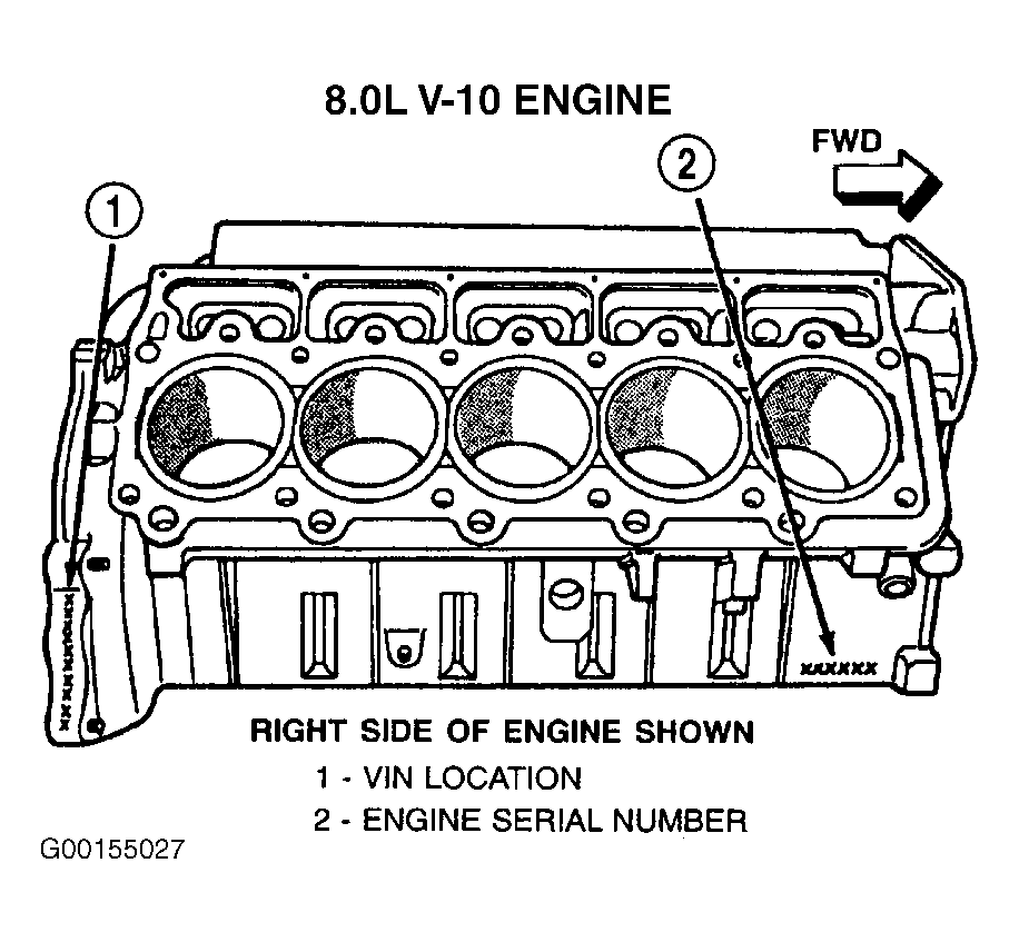 | 8.0L V10 | Front Right Hand Side Of Cylinder Block, Near The Oil Filter. See Fig 5 | |