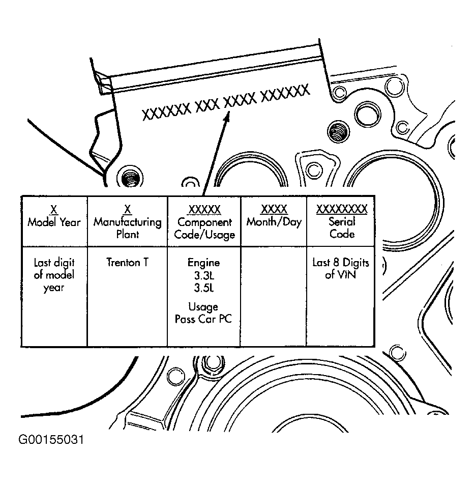 Fig 3: Locating Engine Identification Code (3.3L & 3.5L V6 - New Yorker, LHS, Concorde, Intrepid & Vision)