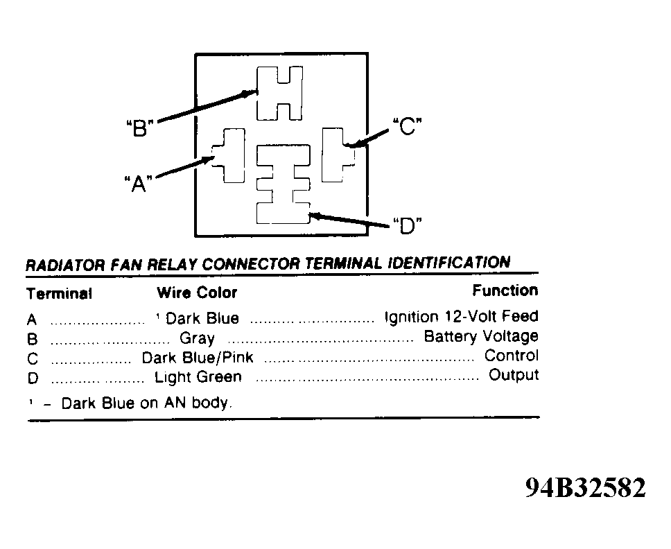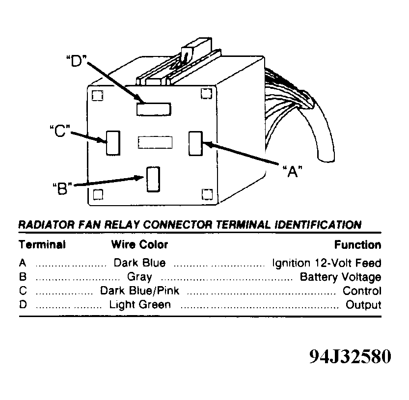 Courtesy of CHRYSLER CORP. RADIATOR FAN RELAY CONNECTOR TERMINAL ID