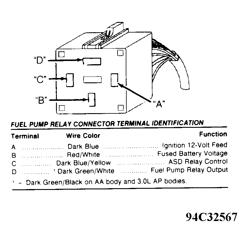 Courtesy of CHRYSLER CORP. FUEL PUMP RELAY CONNECTOR TERMINAL ID