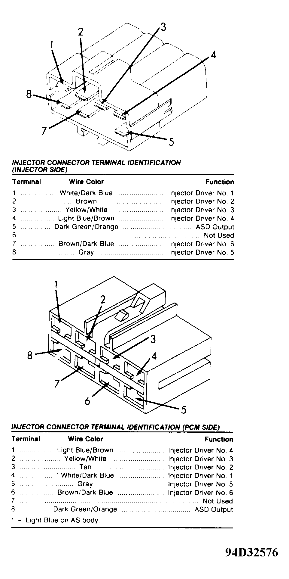 Courtesy of CHRYSLER CORP. INJECTOR CONNECTOR TERMINAL ID (INJECTOR SIDE)
