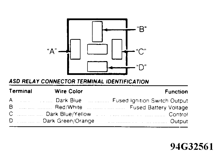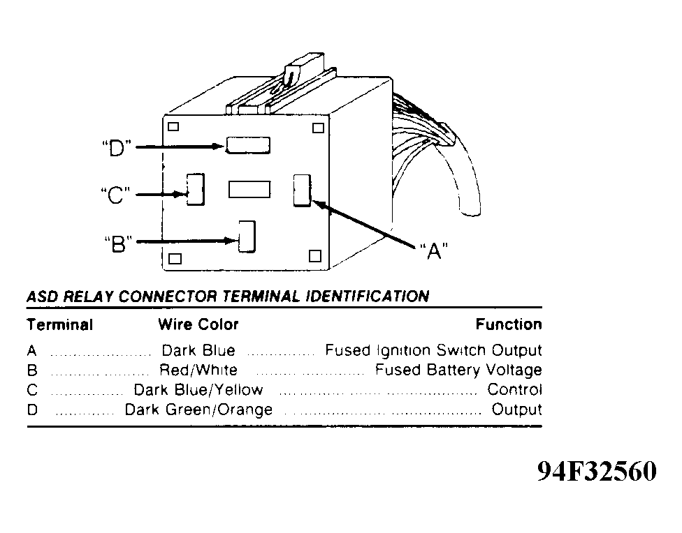 Courtesy of CHRYSLER CORP. ASD RELAY CONNECTOR TERMINAL ID