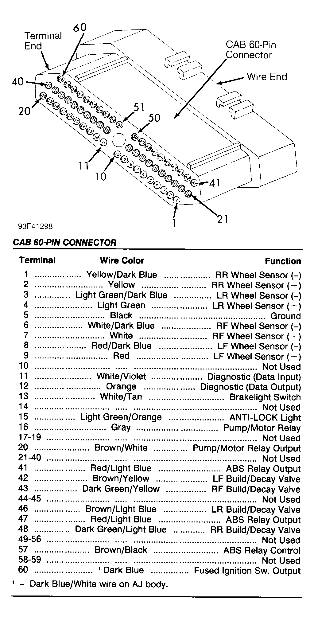 | 60 | Dark Blue/White | Fused Ignition Sw. Output |