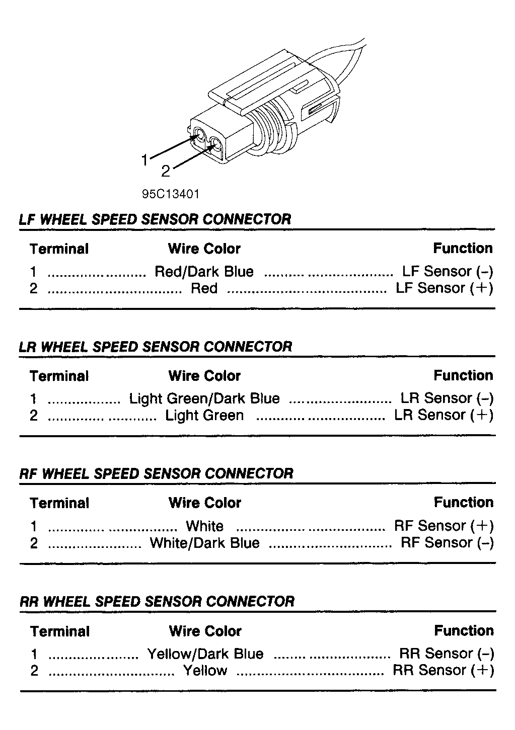 | 8 | Red/Dark Blue | LF Wheel Sensor (-) |