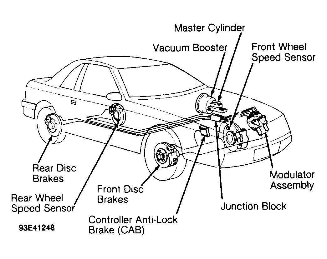 ABS has a self-diagnostic system for trouble shooting and system malfunction warning. ABS uses hydraulic power assist for normal power-assisted braking and to provide a source of high-pressure hydraulic fluid during anti-lock braking. Pedal feel is similar to conventional vacuum-boosted brake system. If additional force is applied during anti-lock stop, or if brake pedal is released and re-applied rapidly, driver may notice a very hard pedal feel. This is due to isolation of master cylinder during ABS operation, as wheel brake pressure is fed from modulator assembly.