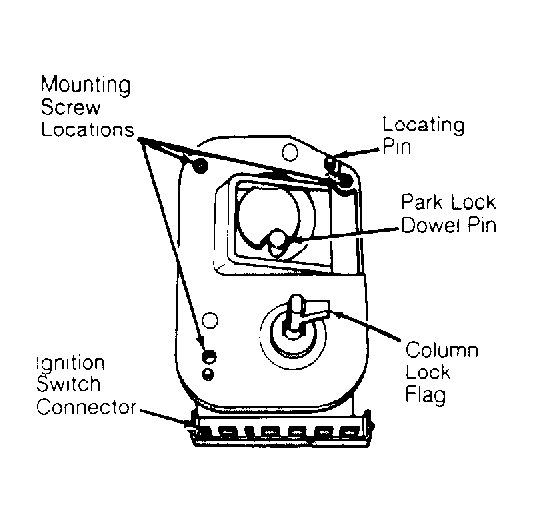 - Column lock flag is in proper position if flag is parallel to lower ignition switch terminals. Install ignition switch, ensuring park lock dowel enters into slot in slider linkage inside column housing. Install screws, and tighten to 17 INCH lbs. (2 N.m). To complete installation, reverse removal procedure.