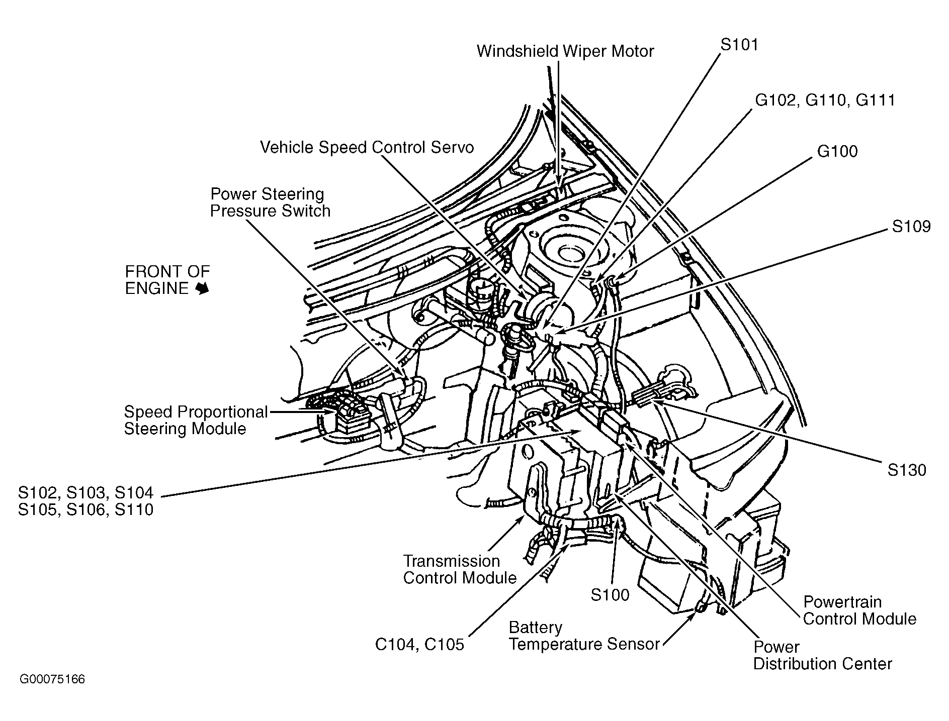 | Powertrain Control Module | Left fender side shield, attached to power distribution center. See Figure . |