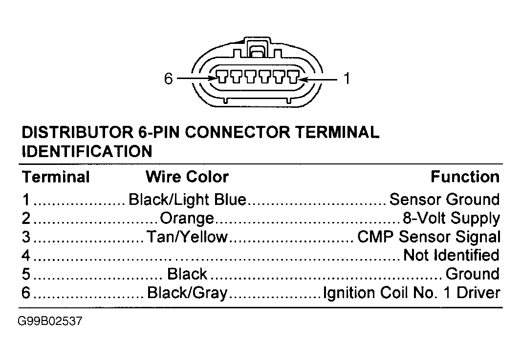 Fig 13: Distributror 6-Pin Connector (2.5L)