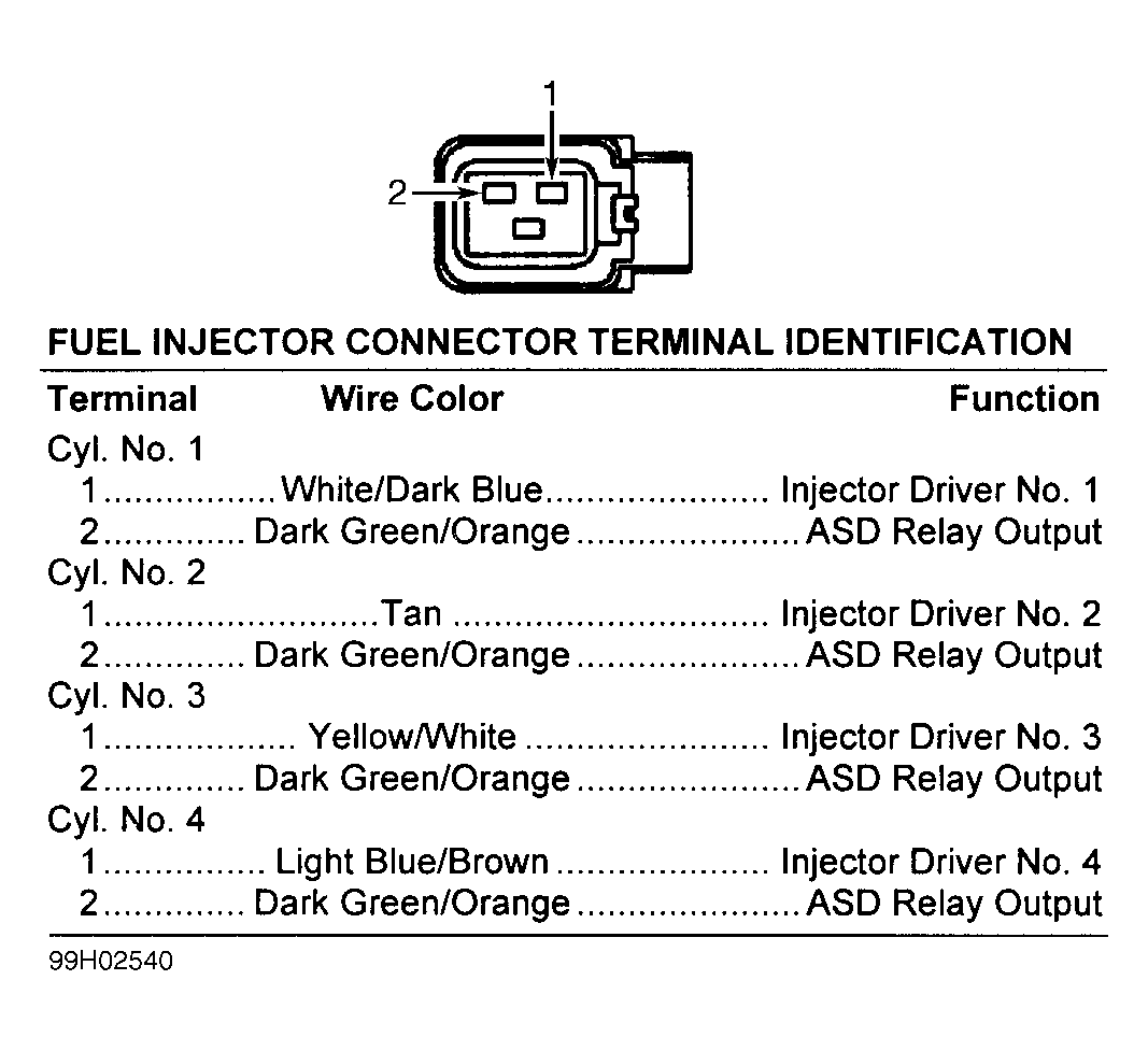Fig 16: Fuel Injector Connector (2.0L/2.4L)