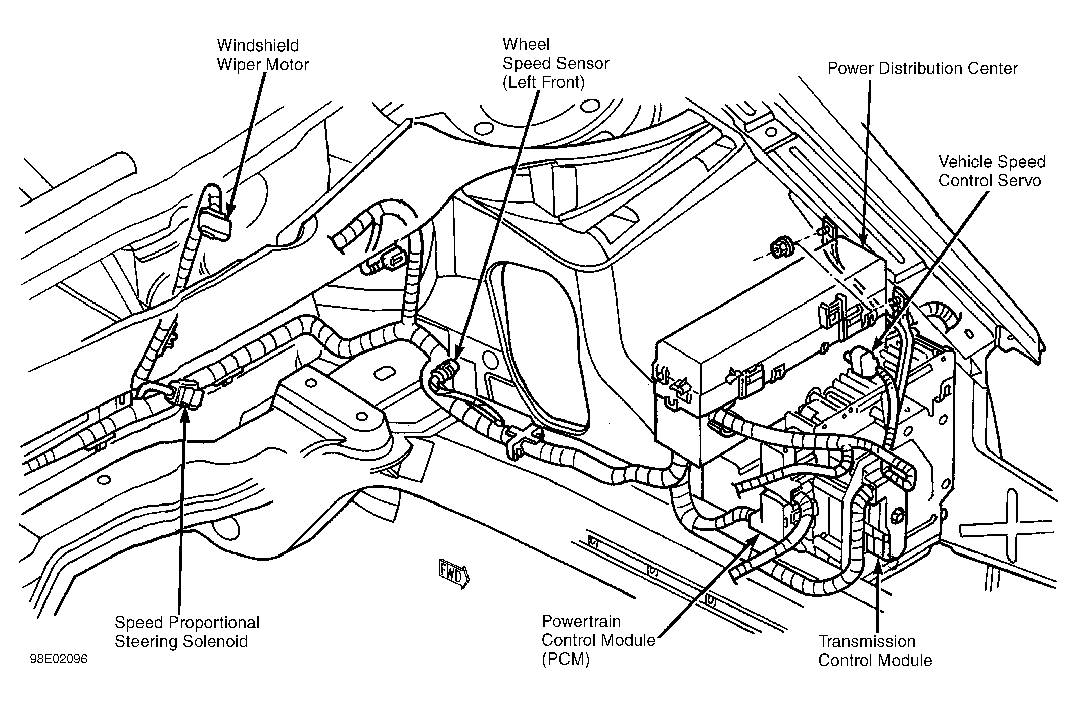 | Power Distribution Center | On left side of engine compartment. See Figure. |