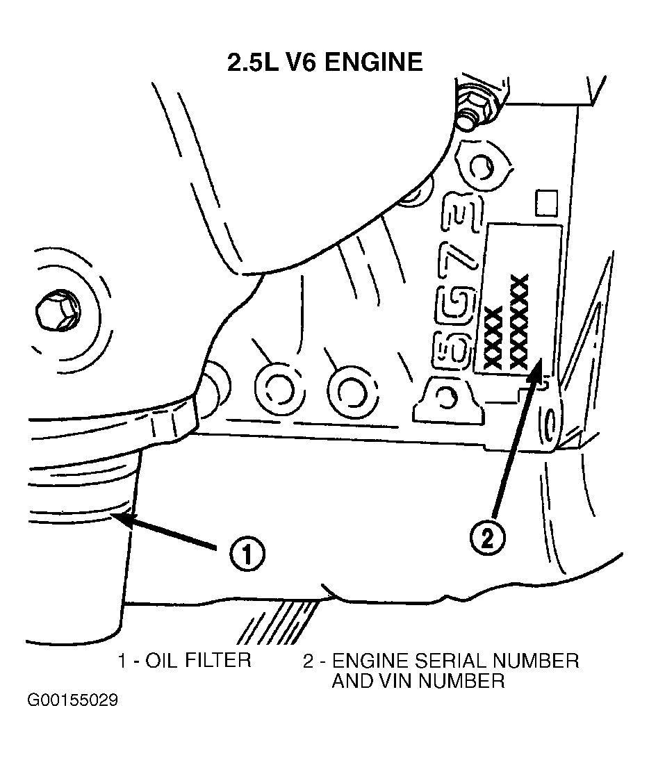 Fig 5: Locating Engine Identification Code (2.5L V6 - Breeze, Cirrus, Stratus & Sebring Convertible)