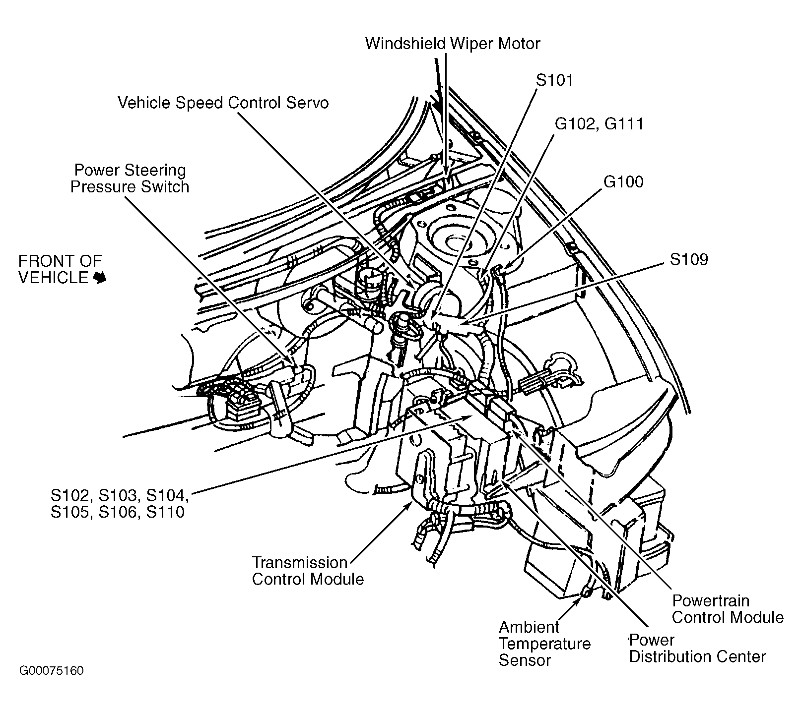 | Transmission Control Module | Left fender side shield, attached to power distribution center. See Figure . |