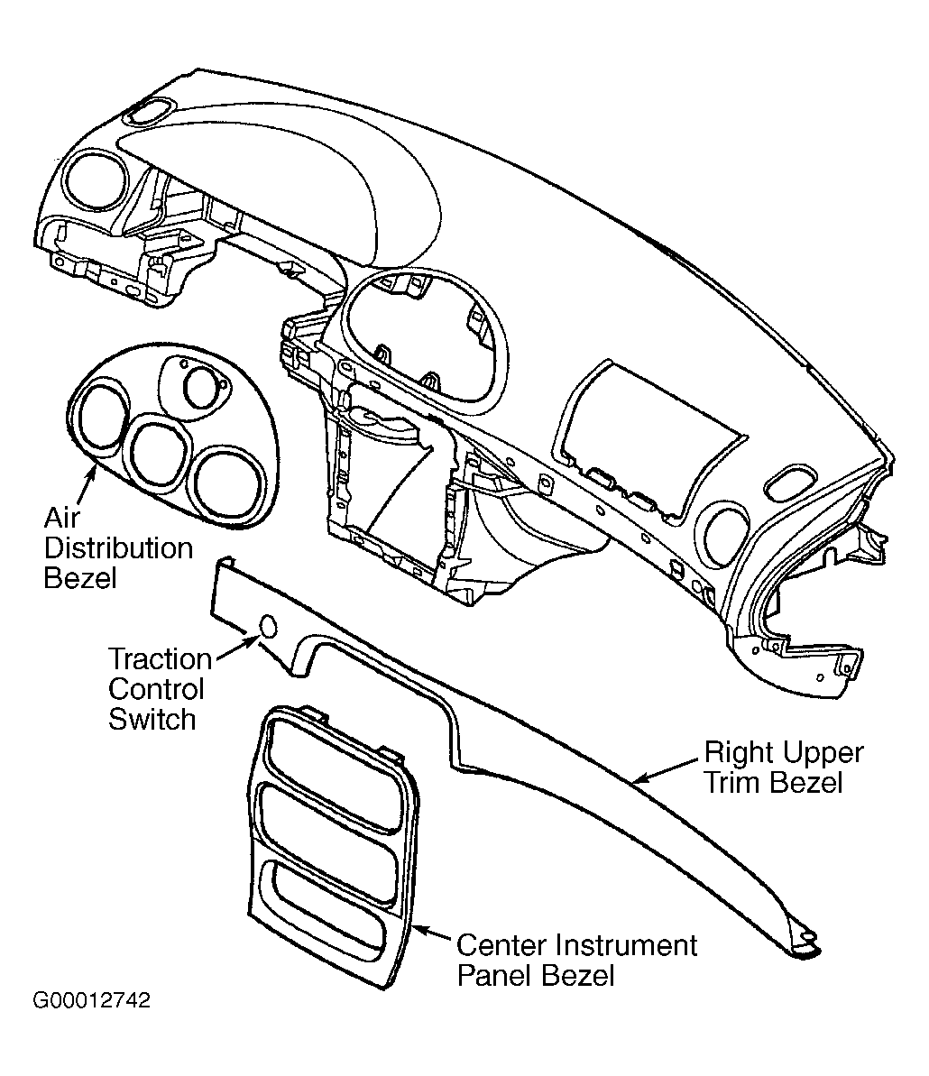 The traction control switch is mounted on upper right trim bezel. See Figure . Traction control switch may be used to turn Traction Control System (TCS) on or off. TCS will come on each time ignition is turned on, even if system was turned off with traction control switch before turning ignition off.