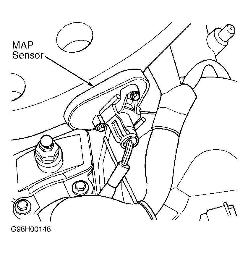 8. Remove MAP sensor. Inspect condition of intake manifold and MAP sensor vacuum ports. If a restriction or defect is found in vacuum ports, repair restricted or defective vacuum ports as necessary. If no restrictions or defects are found in vacuum ports, go to next step.