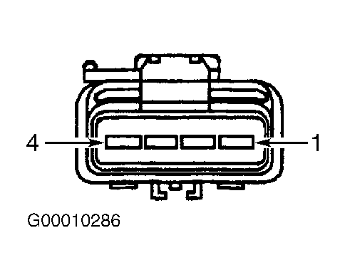 - Ensure high speed radiator fan relay is still actuated. Using a test light connected to ground, backprobe terminal No. 4 (Yellow wire) at radiator fan motor harness connector. See Fig 1. If test light blinks on and off, go to next step. If test light does not blink on and off, go to step 12.