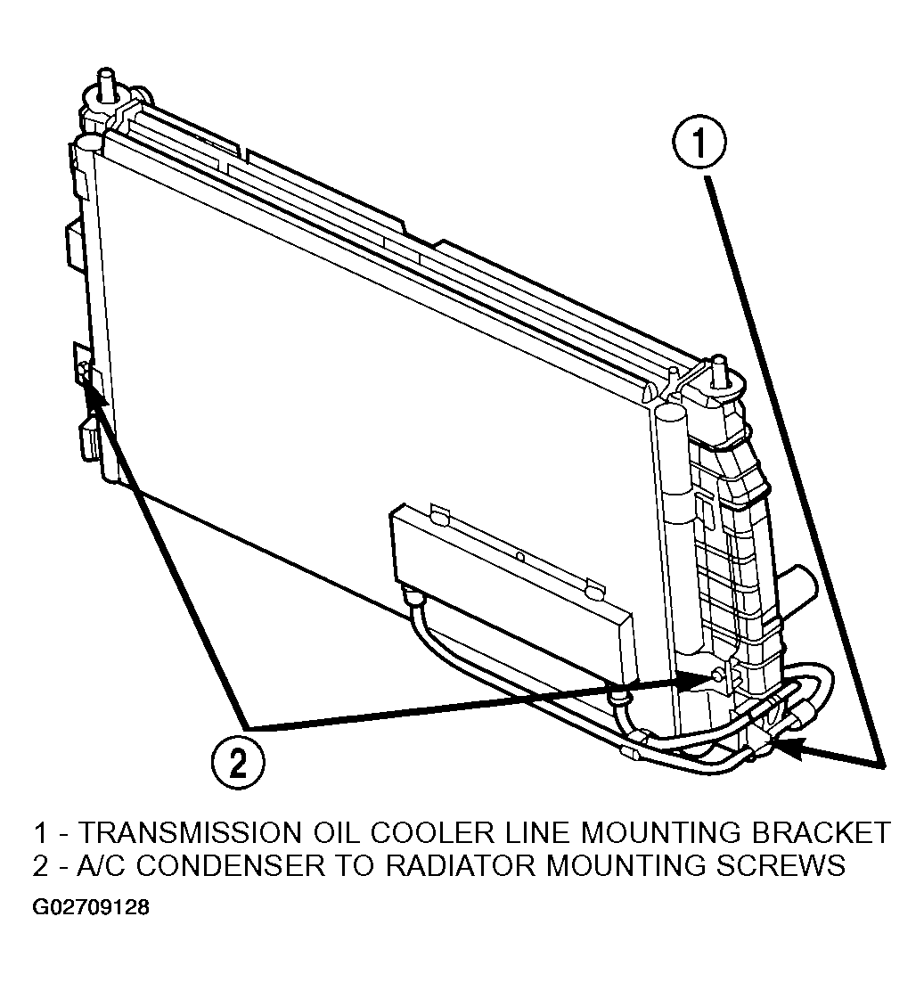 - Attach air conditioning condenser to mounting clips on radiator. Install mounting screws and tighten to 5 N.m (45 in. lbs.) (Figure ) or (Figure ).
