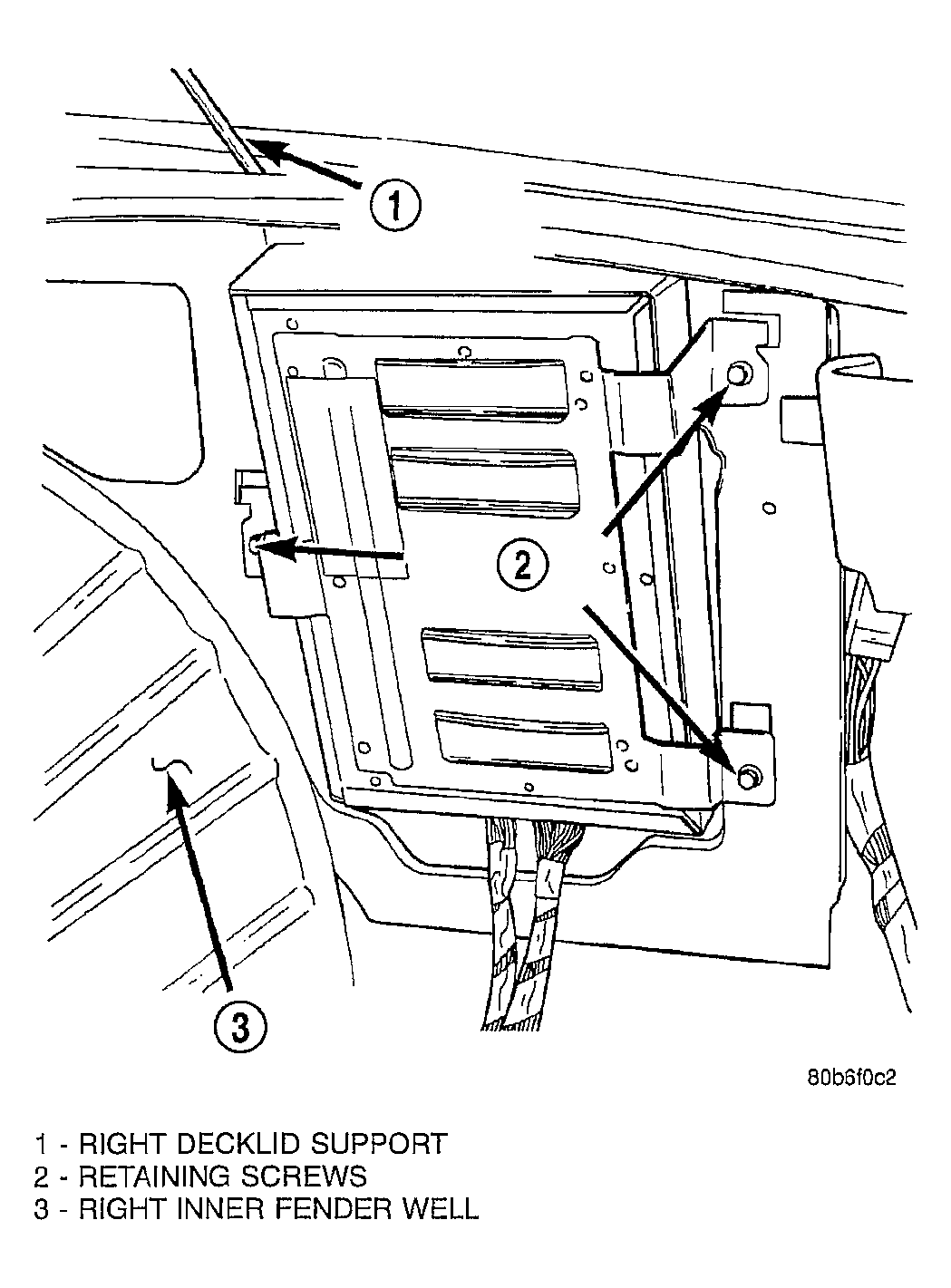 - Inside trunk, pull the trunk liner aside (right quarter panel passenger side).