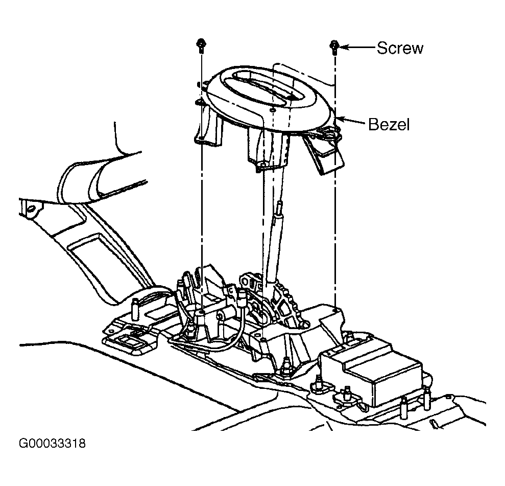 3. Remove remaining screws and center console. Remove set screw and gear selector knob. Remove screws and gear selector indicator bezel located on top of gear selector assembly. See Fig 1 . Reinstall gear selector knob.