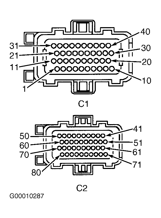 - Turn ignition off. Using voltmeter, backprobe Black/Light Blue wire between 1/2 HO2S harness connector and terminal No. 51 at PCM C2 harness connector. See Figure. Start engine and allow it to idle. Ensure coolant temperature is at normal operating temperature. Note voltage reading. If voltage drop is less than .1 volt, go to next step. If voltage drop is .1 volt or more, repair poor connection causing high resistance on 1/2 HO2S ground circuit (Black/Light Blue wire) between 1/2 HO2S and PCM.