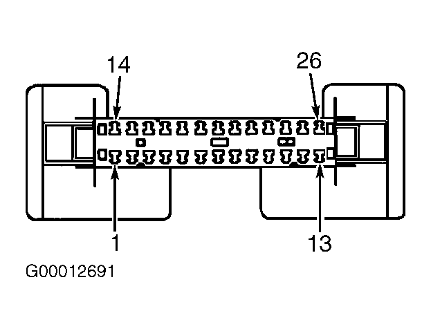 1. Turn ignition off. Disconnect instrument cluster connector. Instrument cluster connector is a 26-pin Black connector, located behind left upper instrument panel. Go to next step.