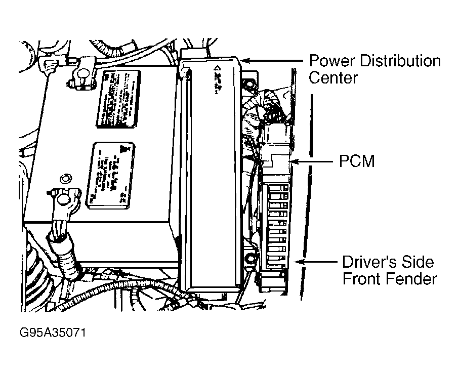 - The PCM is located between driver's side front fender and Power Distribution Center (PDC), near battery. See Fig 1