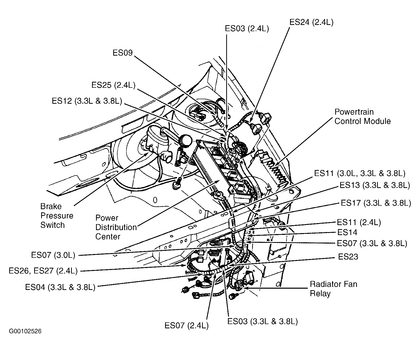 | Powertrain Control Module | Left side of engine compartment. See Figure. |