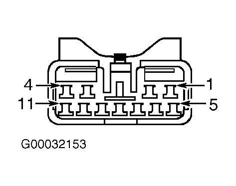 2. Turn ignition off. Disconnect driver mirror connector. Turn ignition on. Measure voltage on driver mirror connector terminal No. 9, driver mirror horizontal position signal circuit (Dark Blue/Yellow wire). See Fig 1 . If any voltage exists, repair short to voltage in Dark Blue/Yellow wire. If no voltage exists, replace driver mirror.