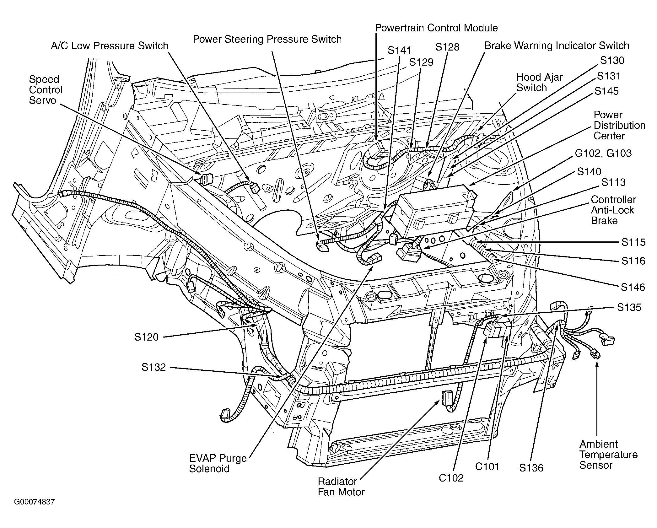 | Transmission Control Module | At left front of engine compartment. |