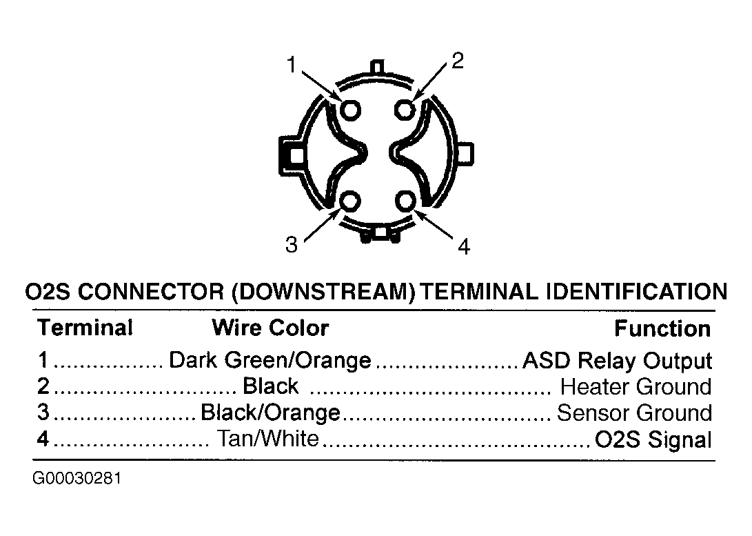- Measure resistance between engine ground and signal circuit (Tan/White wire) at 1/2 HO2S harness connector. If resistance is 5 ohms or more, go to next step. If resistance is less than 5 ohms, repair short to ground in signal circuit.